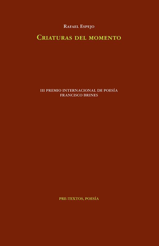 En Criaturas del momento se concentra una visión de mundo donde gozo y melancolía son uno y lo mismo. Los poemas responden a un proceso de artesanía lingüística que, no obstante, trasciende el oficio creando emocionantes escenas sobre la infancia, el amor, el cosmos o la fugacidad de todo cuanto existe. Se trata probablemente del libro más armonioso de Rafael Espejo.