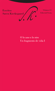 O lo uno o lo otro (1843) es la primera obra publicada por Soren Kierkegaard, en la que comenzó a trabajar casi inmediatamente después de la lectura de su tesis Sobre el concepto de ironía (publicada también en esta editorial). Escrito de una compleja estructura textual y, en muchos sentidos, el más excelso de todos los suyos, fue fruto de una intensa dedicación de dieciséis meses, si bien la primera elaboración de algunos materiales se remonta a años atrás. Bajo el pseudónimo de Victor Eremita, presunto responsable de la edición, la publicación señalará para Kierkegaard el inicio de su carrera como escritor en sentido estricto.