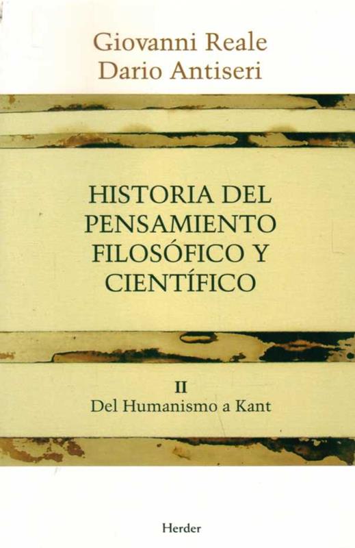 El segundo volumen, Del humanismo a Kant, incluye: humanismo y renacimiento; revolución científica; metafísica del racionalismo; evolución del empirismo; cultura ilustrada; Kant y la filosofía trascendental.
