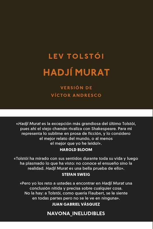 Hadjí Murat es la excepción más grandiosa del último Tolstói, pues aquí el viejo chamán dota de una existencia exuberante incluso a los personajes más secundarios. Todos en esta novela poseen una vívida individualidad: Shamil, el zar Nicolás, Avdéiev, el desdichado soldado ruso muerto en una escaram...