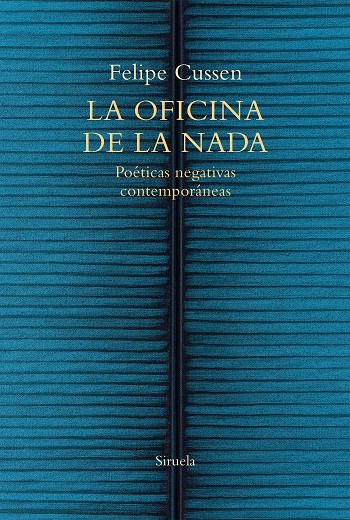 La «oficina de la nada» es la expresión de Miguel de Molinos escogida como metáfora de este libro: un espacio en el que se reúnen, analizan y clasifican numerosas obras literarias y visuales producidas principalmente en la segunda mitad del siglo XX y los inicios del siglo XXI que intentan representar, materializar o producir el efecto de la nada. En cada capítulo se despliega una secuencia de motivos, soportes y estrategias recurrentes que han surgido en el ámbito de la narrativa, la poesía y la literatura digital, los libros de artista y el arte conceptual. Como se podrá observar, estos gestos, a veces serios y profundos, otras veces absurdos e irónicos, ponen al desnudo las estructuras culturales, políticas y económicas en que se sustenta aquello que aún entendemos por experiencia estética. Los archivadores de esta oficina acogen, también, una tradición sorprendentemente rica tanto en experimentaciones creativas como en reflexiones filosóficas y religiosas, particularmente de la teología negativa. Se ofrece así un marco de comprensión más amplio y complejo en el que la inefabilidad de la experiencia mística se superpone con las tensiones del lenguaje y la representación en las poéticas negativas contemporáneas.