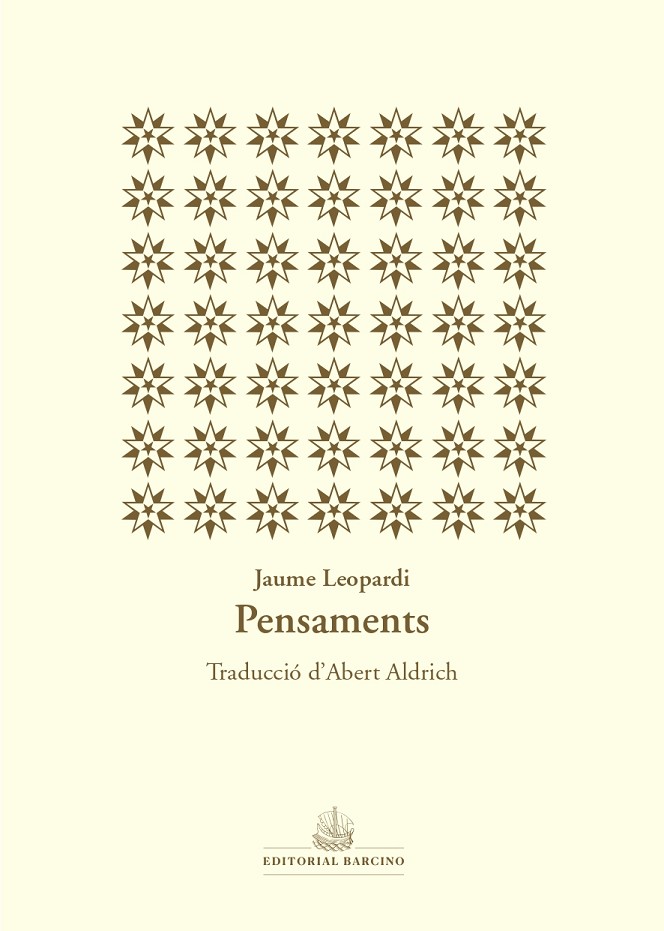 El llibre Pensaments és un recull de 111 aforismes i reflexions del gran poeta i pensador italià Giacomo Leopardi (1798-1837) i que en català només es poden llegir en aquesta tra-ducció que recuperem. El text que encapçala el llibre a manera de pròleg ja assenyala la idea que recorre tot el conjunt de pensaments: en el món sempre predominen els malvats perquè són majoria i es donen suport els uns als altres per sobreposar-se als homes de bé («Jo dic que ·el món es una lliga de brètols contra els homes de bé, i de vils contra els generosos»). Es van publicar pòstumament el 1845, seguint les indicacions de l’autor, que va incloure-hi molts fragments havien format part del Zibaldone (la seva altra gran obra, juntament amb els Cants) així com tants d’altres de nous. El caràcter unitari dels Pensaments rau no tan sols en el tema i en aquesta mirada amarga i sense fissures sobre la vida social i la natura humana, sinó també en l’enfocament i en l’estil. És una obra del JO, que va tenir una gran influència en els escriptors catalans del nou-cents i que encara avui captiva els lectors que s’hi apropen per primer cop. La lucidesa de Leopardi ens fa pensar en Cioran, però també en Maquiavel, i la seva visió de l’home és avui és més vigent que mai.