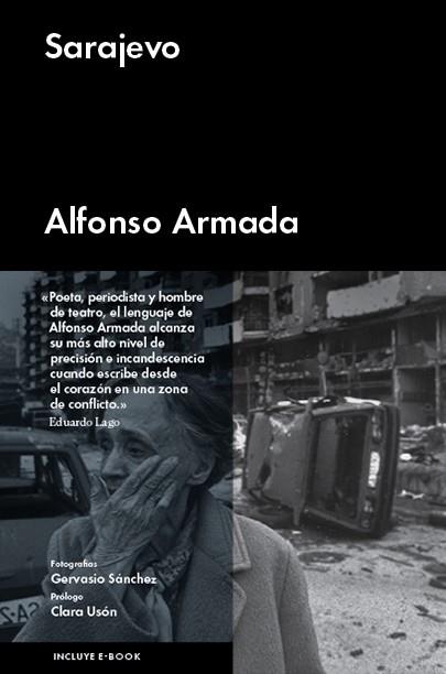 En nuestro imaginario, Sarajevo es un topónimo vinculado con el asedio, la supervivencia, el horror. En el contexto de la guerra de Bosnia, a principios de los años 90, la ciudad se convirtió en una red de balas cruzadas y proyectos culturales, de destinos negados y de gestos esperanzadores, de carestía e imaginación. Como Susan Sontag o Juan Goytisolo, Alfonso Armada estuvo allí y nos lo cuenta. Lo hace con una prosa precisa y lírica, que recurre tanto a la bitácora como a la crónica, tanto al apunte personal como al texto de opinión, para transmitir la complejidad del conflicto que decidió la Europa del siglo XXI en un libro lleno de desgarros. Lo acompañan dos grandes conocedores de la antigua Yugoslavia: con sus fotografías el prestigioso fotorreportero Gervasio Sánchez compañero de viaje del autor, que también fue testigo de la guerra; y con su prólogo, Clara Usón, autora de una novela indispensable sobre el tema, La hija del Este.